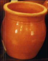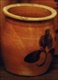 Whitewater, Wisconsin: There were at least four earthenware factories in Whitewater between 1846 and 1882. They used local clay and produced mainly unglazed flower pots and urns, but also used lead-based glaze on some of their wares that gave them a distinctive yellow/orange color. Some pieces were also brush decorated with magnesium. They are difficult to attribute to a particular Whitewater factory because they were rarely if ever signed. Some principals of these companies include Warren and Michael Cole (father & son), George G. and James.C. Williams (father & son), George Dann, John Milz, Michael Ohnhaus, Rufus Cheney and probably others.
